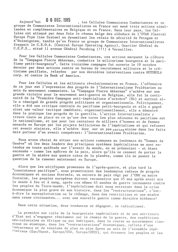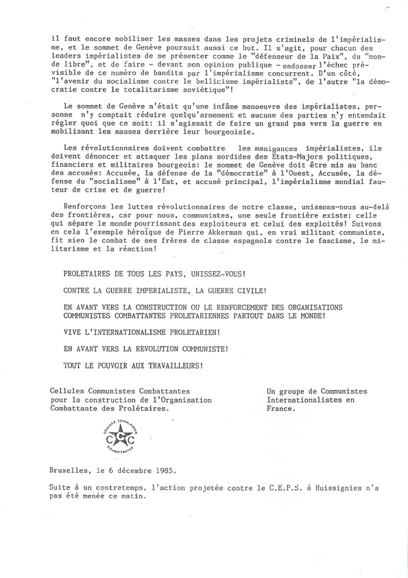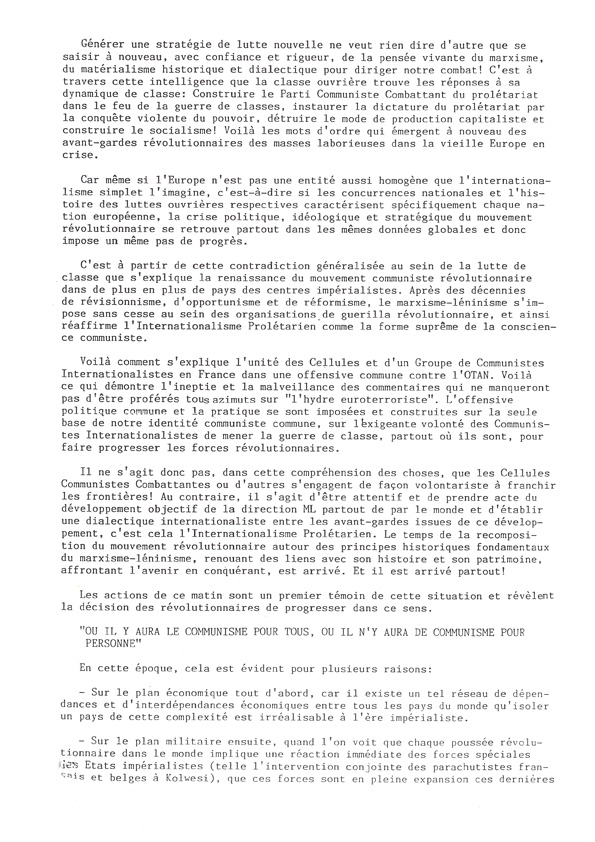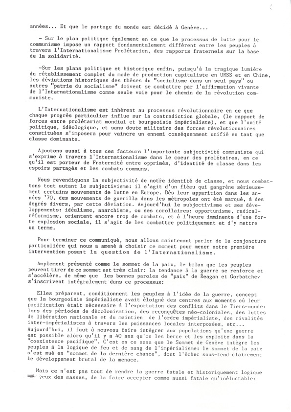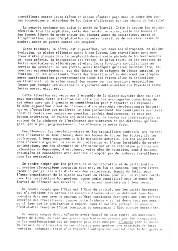 Nous ne disposons ni d'un original ni d'une copie de la "Lettre aux Travailleurs, Travailleuses, Camarades en France" qui était jointe au communiqué dans les envois internationaux. Nous recherchons ce document.
